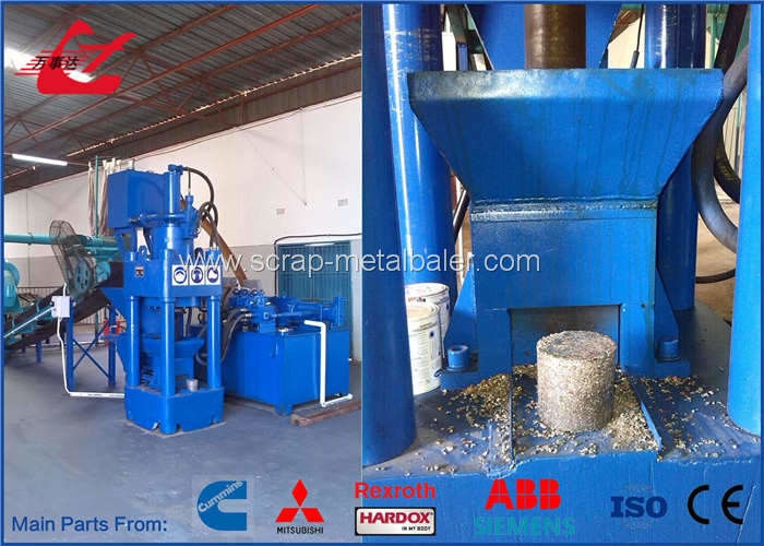 Bu hurda metal briket presi otomatik işlem için PLC ile yapılandırılmıştır. Yüksek verim sağlayan besleme sistemi de benimsenmiştir. 160mm, 180mm ve 200mm çapları ve 300mm yüksekliğiyle briket, kullanıcıların taleplerini karşılamak için özel olarak boyutlandırılabilir.